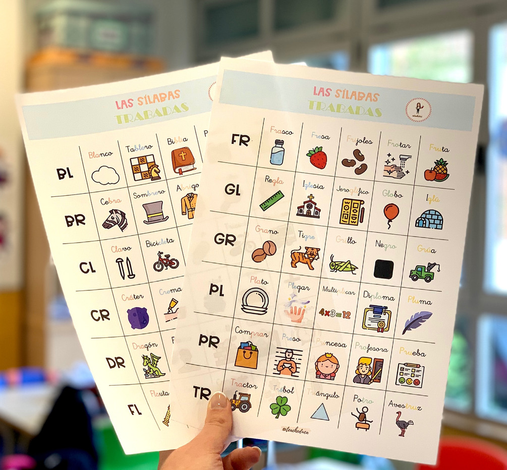 Plantilla para trabajar las trabadas. Contiene plantilla con imágenes para apoyarse en ellas a la hora de la lectura y sin imágenes.